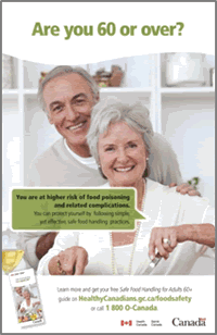 Promote food safety to adults aged 60 and over with the help of these resources: a printable public service announcement and a poster. There is also a fact sheet with safety tips and foods to avoid. All these resources direct people to a free safe food handling guide on the Healthy Canadians website.