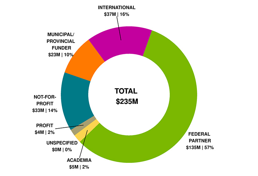 Figure 8: Leveraged Partner Funding by Sector (in millions of dollars) – 2017-18
