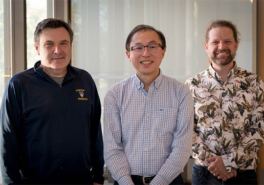 The project's Principal Investigators: Dr. Mike McKay (left), Dr. Kenneth Ng (centre), Dr. Dan Mennill (right). (Photo: D. Mennill)