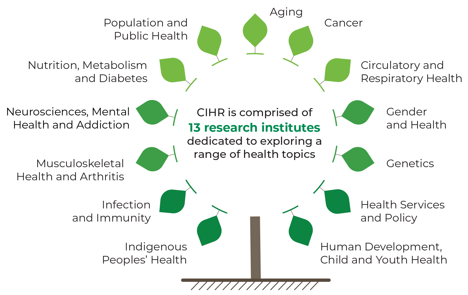 CIHR is comprised of 13 research institutes dedicated to exploring a range of health topics: