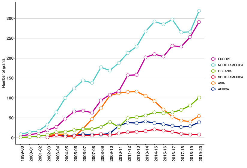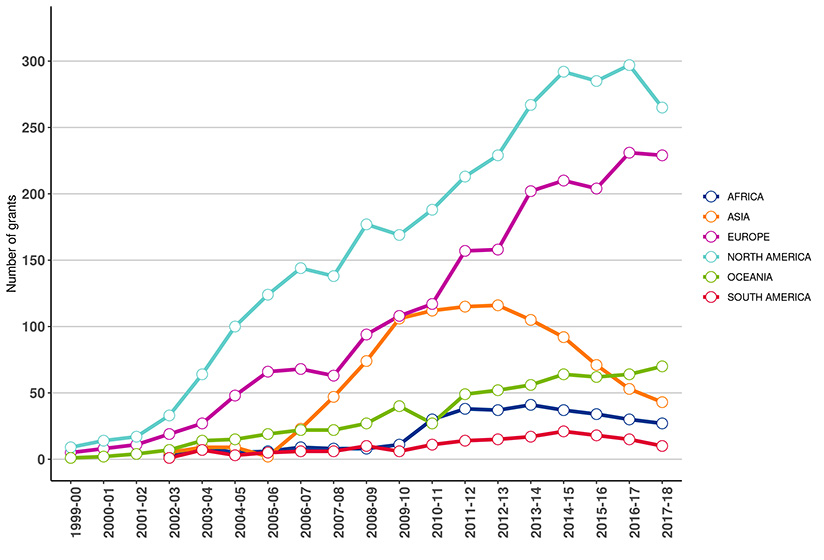 Number of new and ongoing funded applications 2018-19