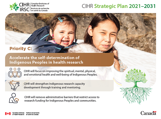 Accelerate the self-determination of Indigenous Peoples in health research: In 10 years, Indigenous communities will lead health research that focuses on resilience, wellness, and Indigenous Ways of Knowing