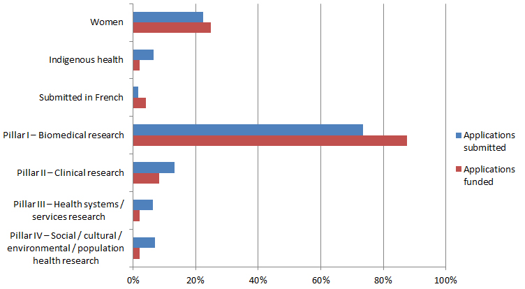 | Pillar IV – Social / cultural / environmental / population health research | 20 applications submitted (17.2%) | 4 applications funded (30.8%) |