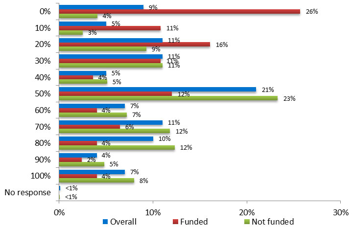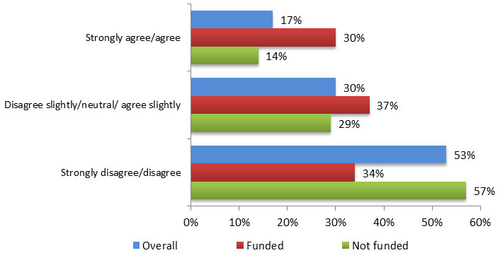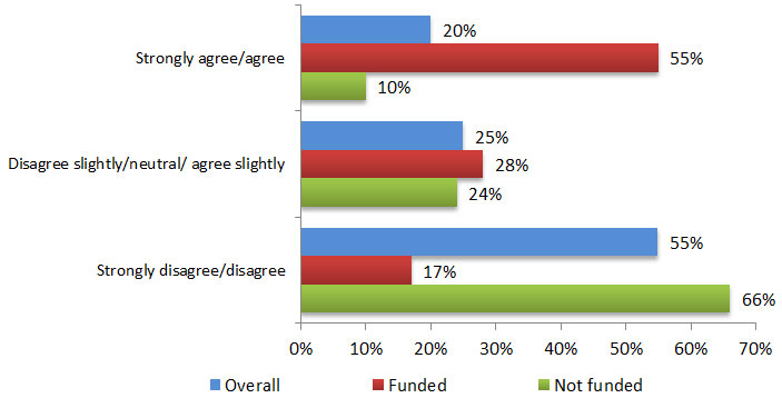 Results also show that scientists with funded applications were much more likely to agree or strongly agree (55%), compared to those not funded (10%).