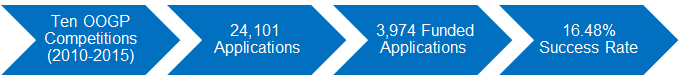 Figure 1. Application Rankings before Peer Review Committee Meetings and Application Success in Ten OOGP Competitions (2010-2015)