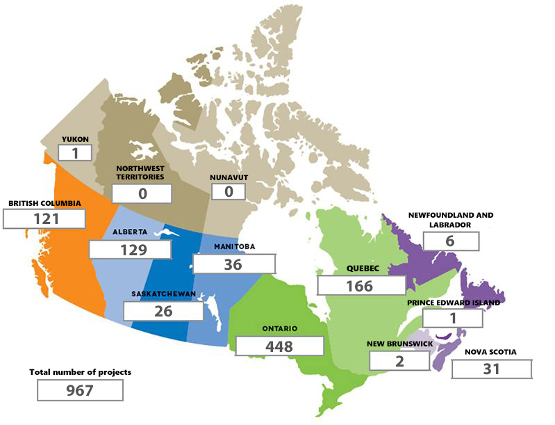 | Province/Territory | Number of projects |