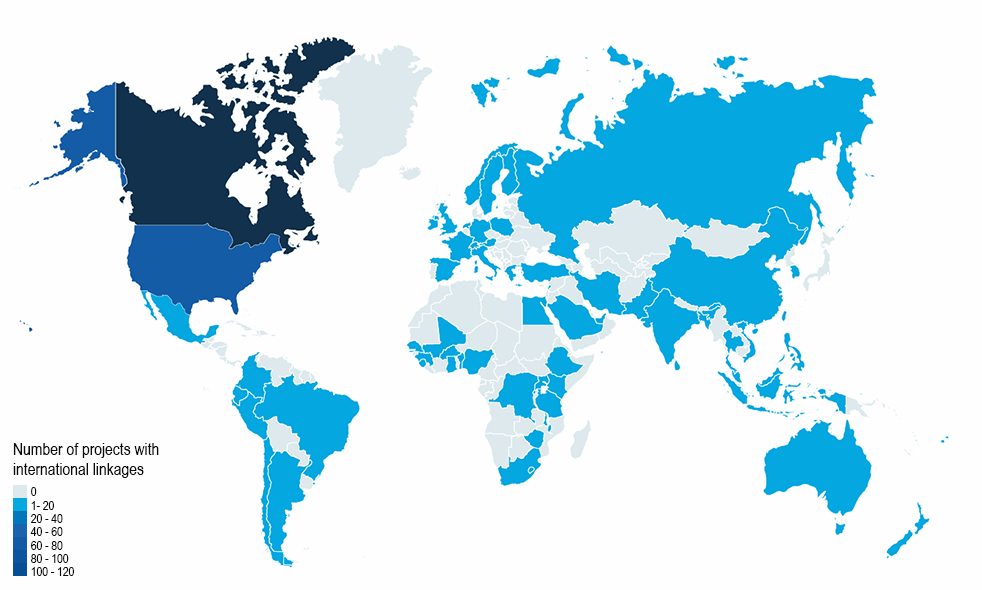 | Country affiliation | N projects (Total) |