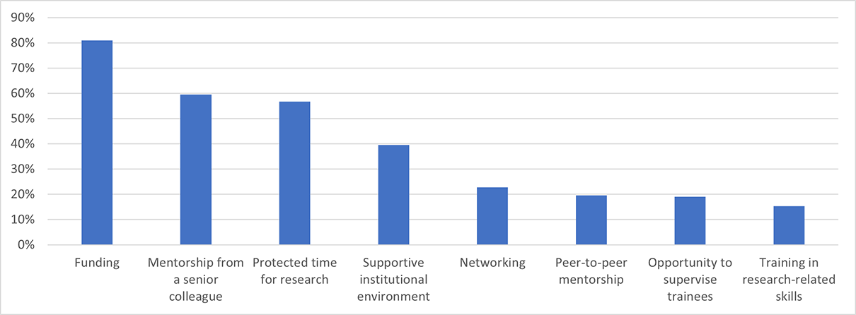 “What support has been most impactful in your career so far?” (n=215) (Top 8 responses shown)