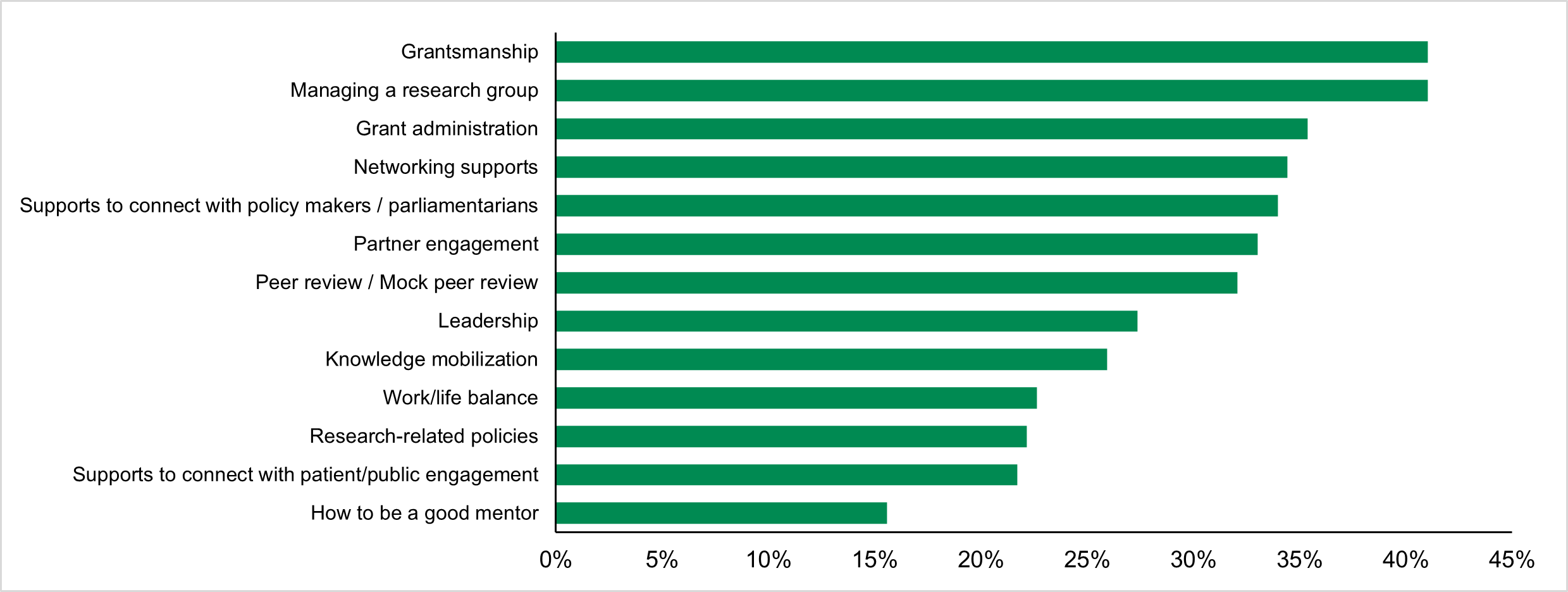 “Which training or supports has been or could be useful to your career?” (n=212) (Top 13 responses shown)