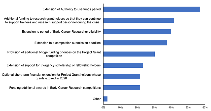 Additional funding to research grant holders so that they can continue to support trainees and research support personnel during the crisis 70 42%