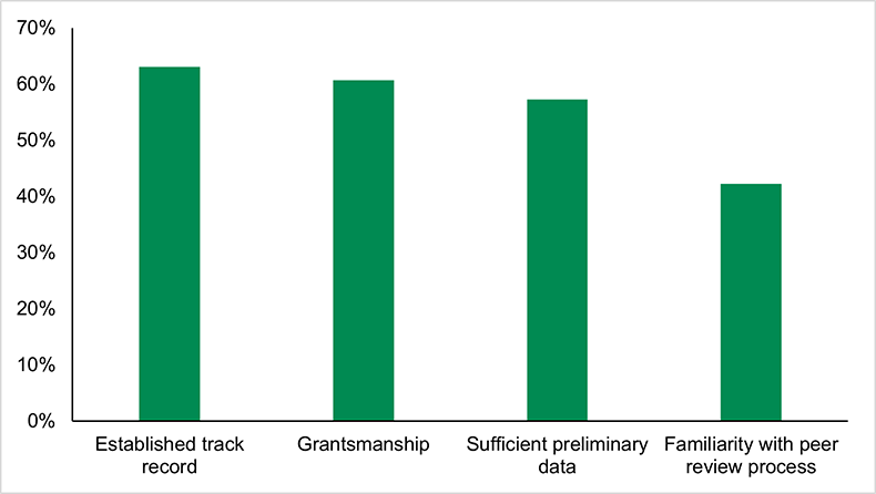 “What factors do you think facilitate success in the CIHR investigator-initiated competitions?” (n=206) (Top 4 responses shown)