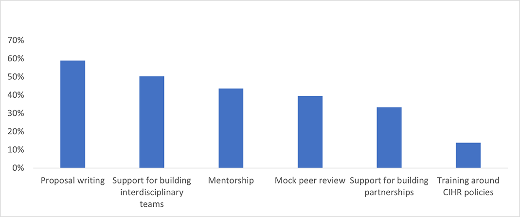 “Which strategic funding types do you think most effectively lead to success in the CIHR investigator-initiated competitions?” (n=196) (Top 3 responses shown)