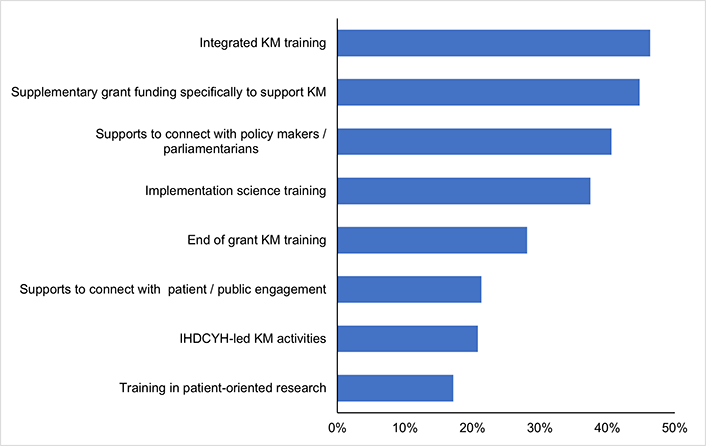 There is a need for training in both the theory and practice of knowledge mobilization, as well as for supplementary grant funding. Researchers want to effectively engage with knowledge users such as policy makers and patients using evidence-based strategies, but face barriers. Researchers want to see greater capacity in implementation science.