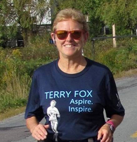 Trudy proudly wearing a t-shirt featuring her idol, the late Terry Fox.