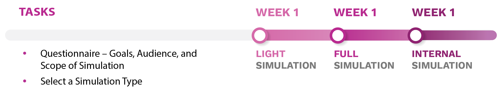 Use the questionnaire below to define the goals, audience and scope of your simulation and, based on your answers, use the proceeding descriptions of each simulation type to select a simulation.