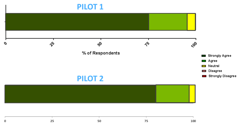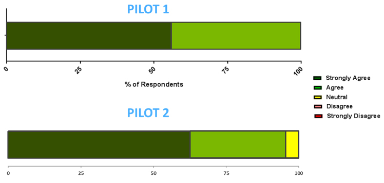 - Pilot 1: 100% of the respondents agreed with the statement with more than half (56%) of survey respondents indicating strong agreement.