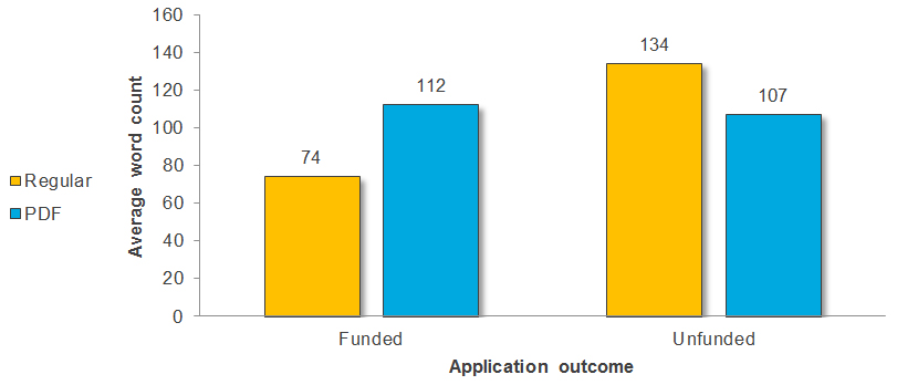 Figure 7 shows the average word count in assessments provided by Regular versus PDF reviewers across funded and unfunded applications.