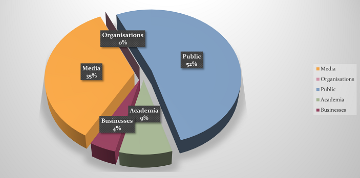 Since 2017-2018, the media has been the source of 69 requests, the general public has been the source of 67 requests and academia has been the source of 21 requests. ATI requests have also been submitted by 28 organizations and 10 businesses. The largest source of requests between 2017-2018 and 2022-2023 was the media with 61 requests, representing 36% of the total requests. The percentage of requests received from the public this year has increased significantly and we saw a slight decrease in media requests