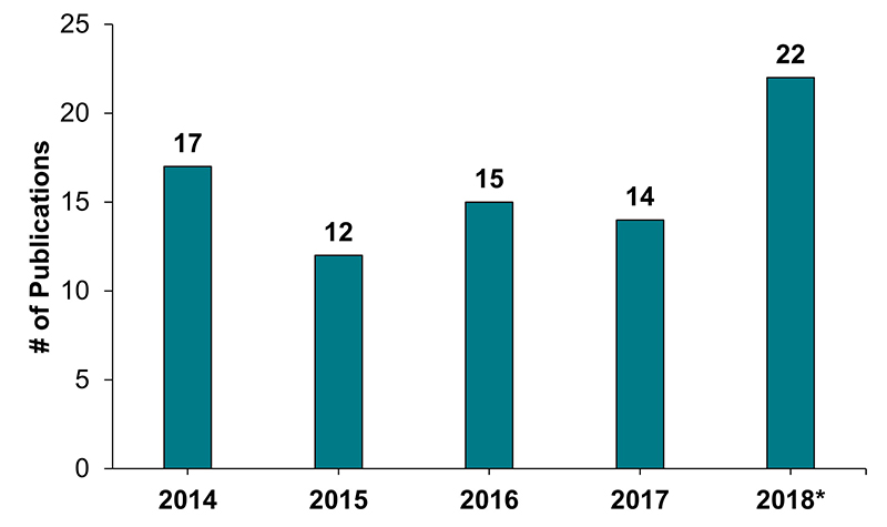 | # of Publications | 17 | 12 | 15 | 14 | 22 |
