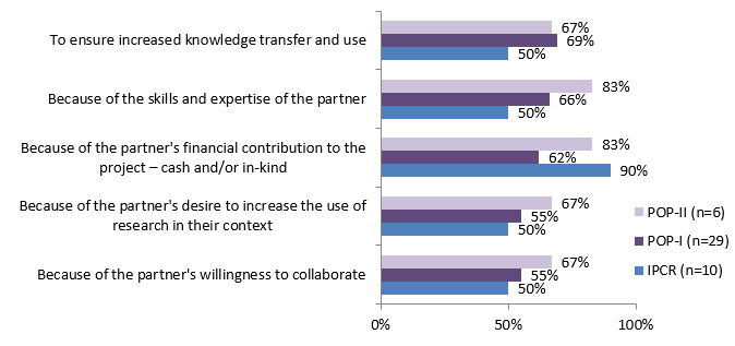 - Although not a requirement for the POP I program, 65% of the POP I funded researchers involved partners during their funded projects.