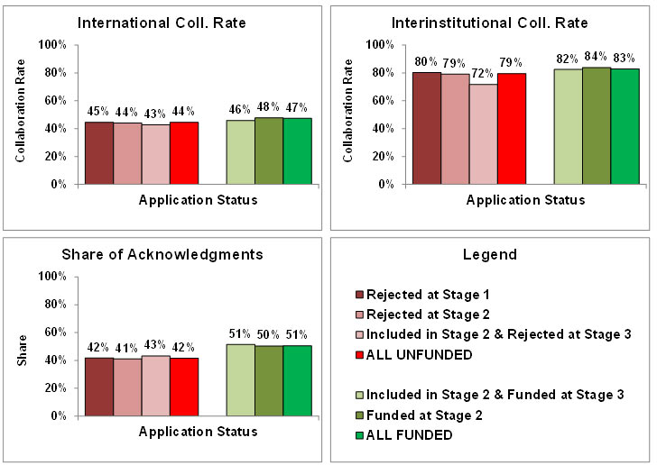 - The international and interinstitutional collaboration rates of all categories of funded applicants are slightly higher than that of all the categories of unfunded ones.