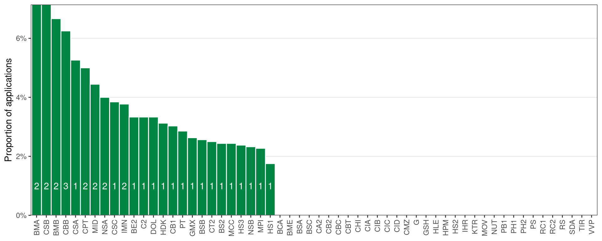 | PRC | Proportion of applications from Foundation grant holders (%) | Number of Foundation grant holder applications |