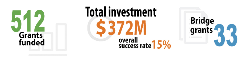 The Project Grant: Fall 2017 competition has approved 512 research grants, plus an additional 33 bridge grants, for a total investment of approximately $372 millionFootnote 1.