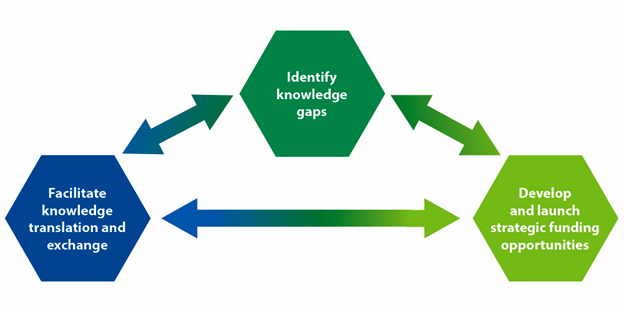 - Knowledge translation and exchange: Ensuring data is effectively shared among researchers and knowledge users, and translated into tools that can be used by decision makers, policy makers, healthcare practitioners and the general public