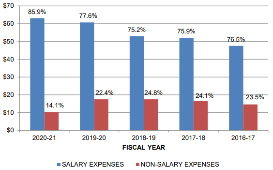 The 2020-21 employer contributions amount to $4,987 ($4,620 in 2019-20). For Group 1 members, the expense represents approximately 1.01 times (1.01 times in 2019-20) the employee contributions and, for Group 2 members, approximately 1.00 times (1.00 times in 2019-20) the employee contributions.