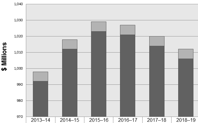CIHR’s forecast spending for 2015‑16 is $1,028.7 million with planned spending going from $1,026.6 million in 2016‑17 to $1,011.9 million by 2018‑19. CIHR’s base budget remains stable between 2015‑16 and 2018‑19. The variance between 2015‑16 and 2018‑19 of $16.8 million is mostly due to funding transferred to CIHR as a result of Tri-Agency program competitions. Funding allocated to each of the three organizations for these programs can vary between competitions, and fiscal years, depending on the projects’ alignment with the research mandate and priorities of each organization.  CIHR’s funding for the current competitions will sunset by 2018‑19 but planned spending will increase as a result of successful health-oriented projects in future competitions.