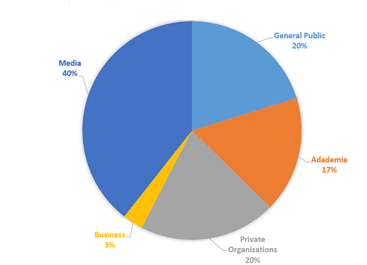 In 2019-2020, although 31% of request sources declined to identify themselves, 25% of requests were received from the media, 25% were from private organizations, 12.5% were from the business/private sector and 6.25% were from the public. As illustrated below, the source of requests received has been consistent over the past five years.