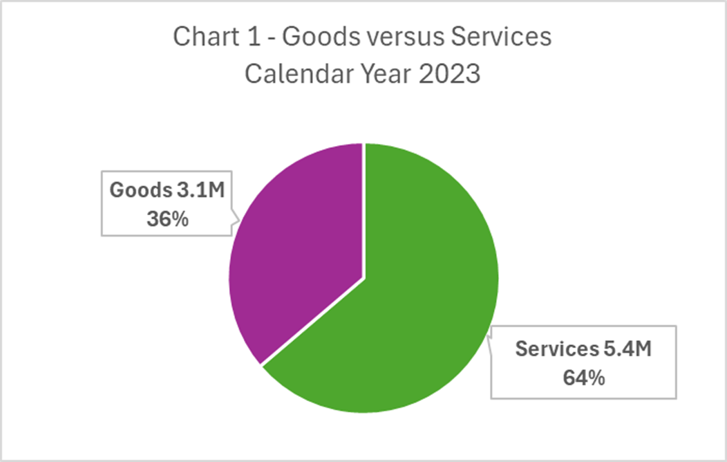 Chart 1 - Goods versus Services (Calendar Year 2023)