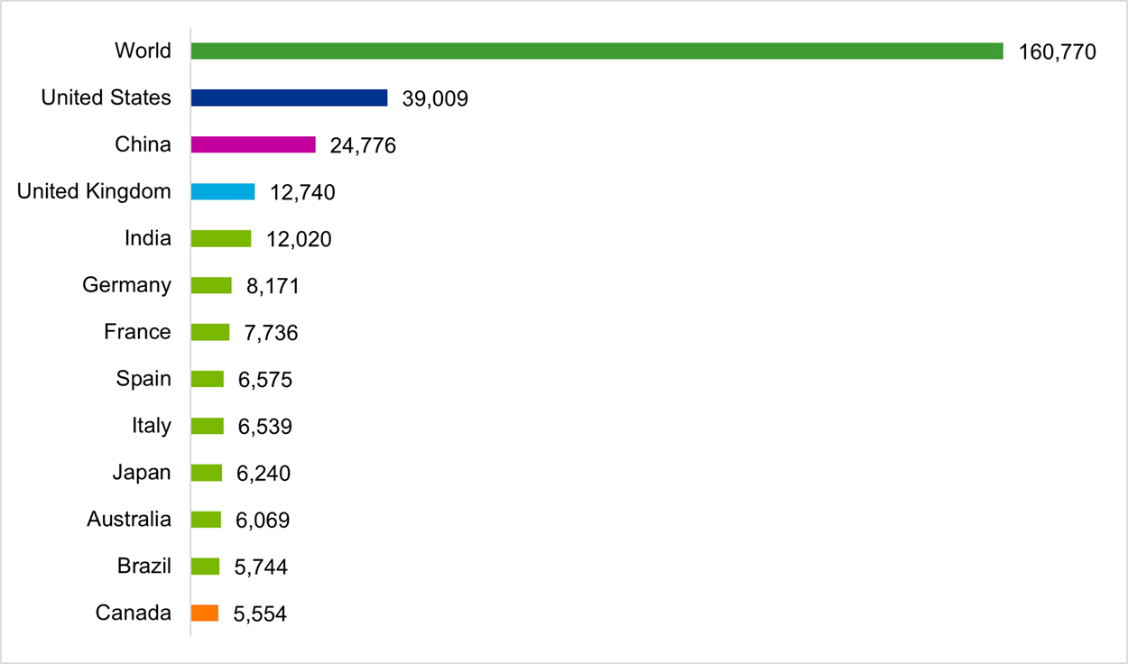 Science-Metrix used Scopus as the main bibliometric database for this study. Data from Scopus were complemented by other sources of data, such as Unpaywall to measure the availability of publications in open access, PlumX to measure citations in social media and popular websites, Overton to measure citations in policy documents, PatentSight to measure citations in patent applications, ClinicalTrials.gov to measure citations in clinical trials, and PubMed to measure citations in practice guidelines.