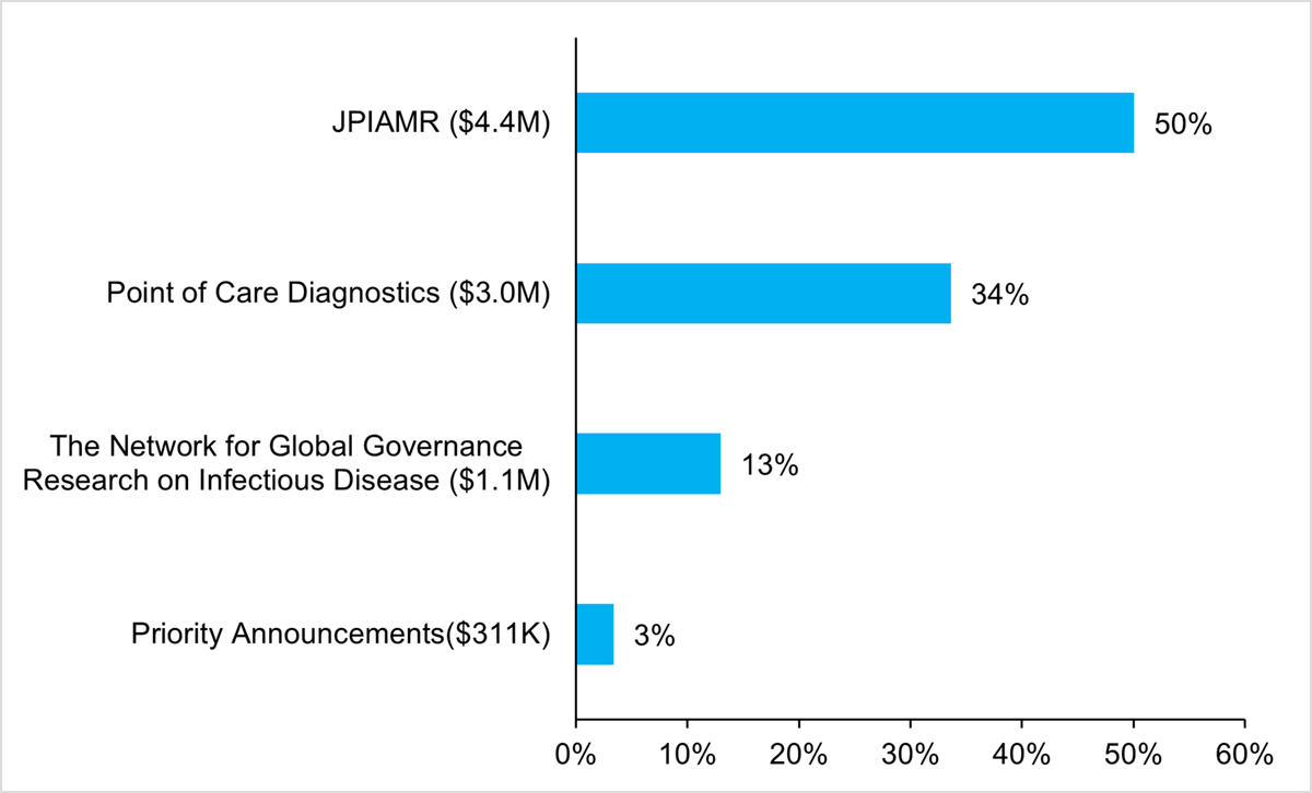The AMRI supports research across national and international funding opportunities through four broad streams: Point of Care Diagnostics, the Joint Programming Initiative on Antimicrobial Resistance (JPIAMR), the Network for Global Governance Research on Infectious Disease, and Priority Announcements.