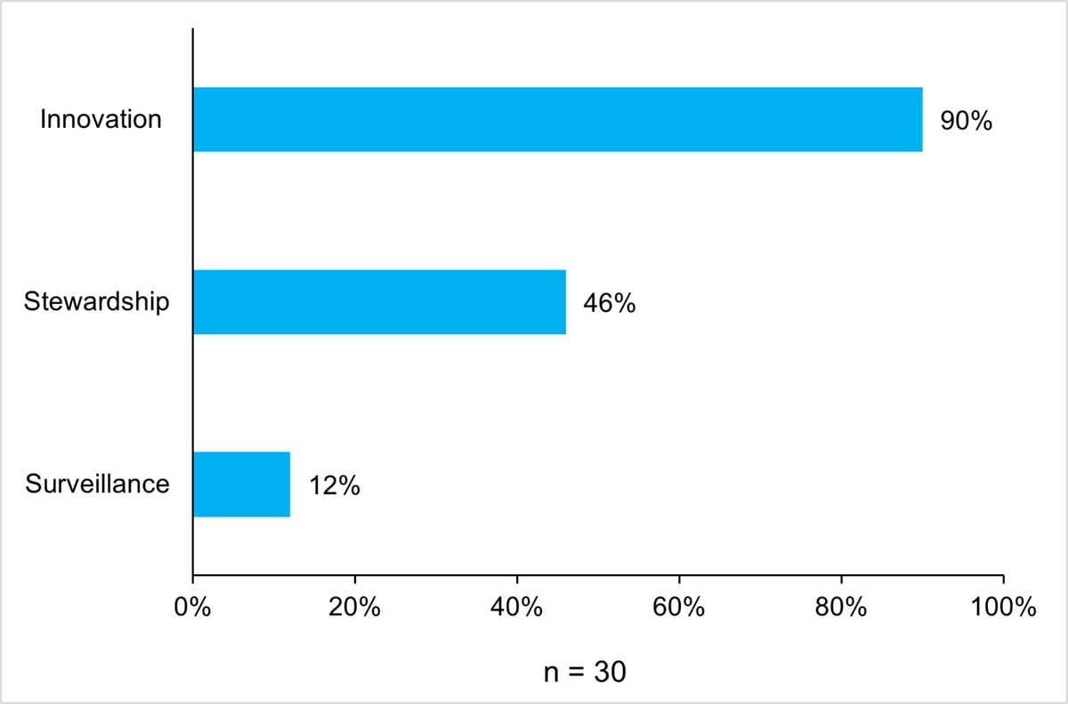 The AMRI leadership has helped shape research priorities within Canada through development of Government of Canada AMR policy documents. Scientific leadership has also contributed to shaping research priorities internationally through partnership with JPIAMR and representing Canada on the Transatlantic Taskforce on Antimicrobial Resistance (TATFAR), the Global AMR Research and Development Hub and the Global Research Collaborations for Infectious Disease Preparedness (GloPID-R). Although, it was reportedly challenging to influence JPIAMR’s research agenda given the need for consensus among the other countries.