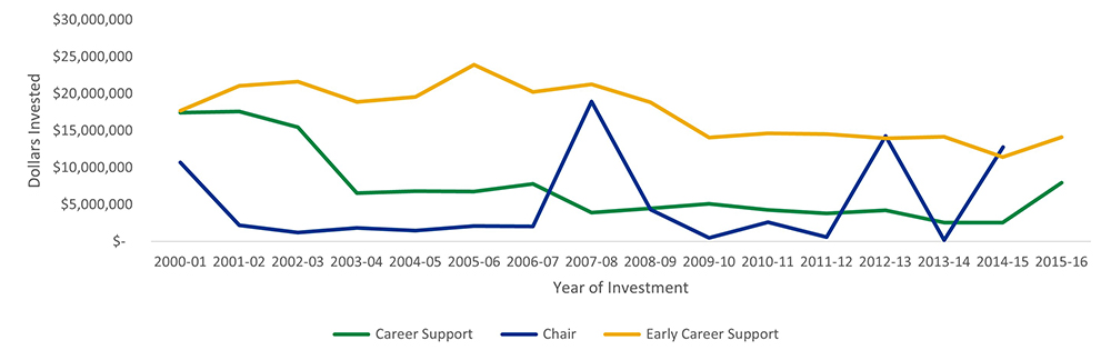 Figure 6: CIHR Investments in Career Support Awards (2000-01 to 2015-16)
