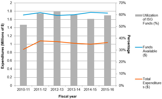 Year Funds Available ($) Total Expenditures ($) Utilization of ISG Funds (%)