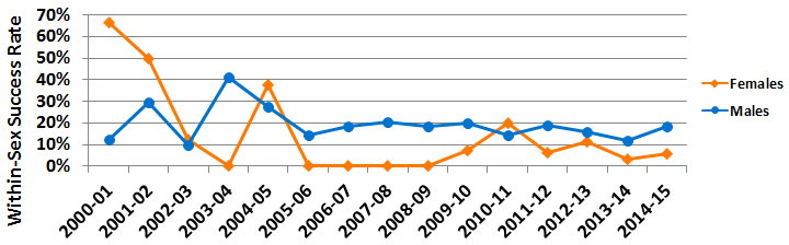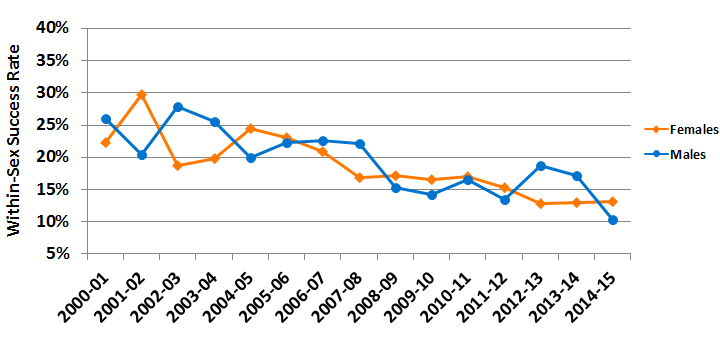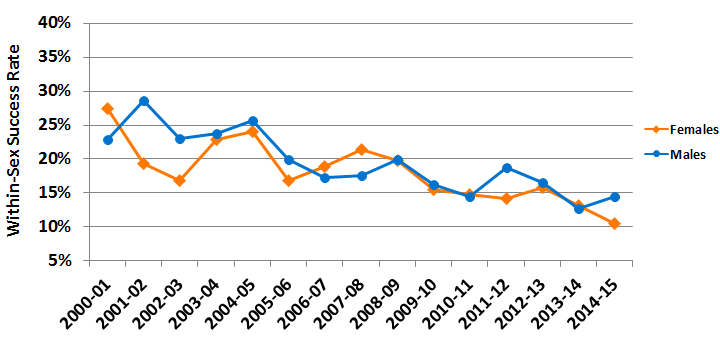 Within-sex success rate (%) M 34 33 31 33 29 26 22 23 22 18 18 19 18 15 15
