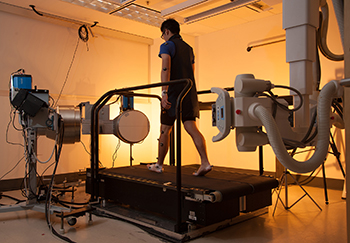 The high accuracy dual fluoroscopy system in the Clinical Movement Assessment Laboratory allows researchers to investigate post-traumatic osteoarthritis. Photo by Don Molyneaux