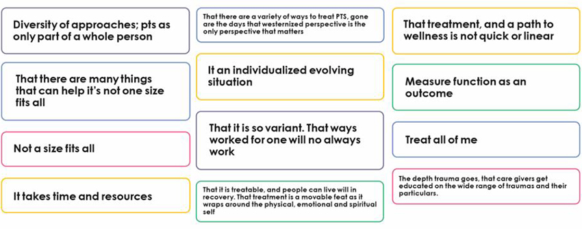 Figure Legend: Responses to: What is something you wish everyone knew about the treatment of PTS?