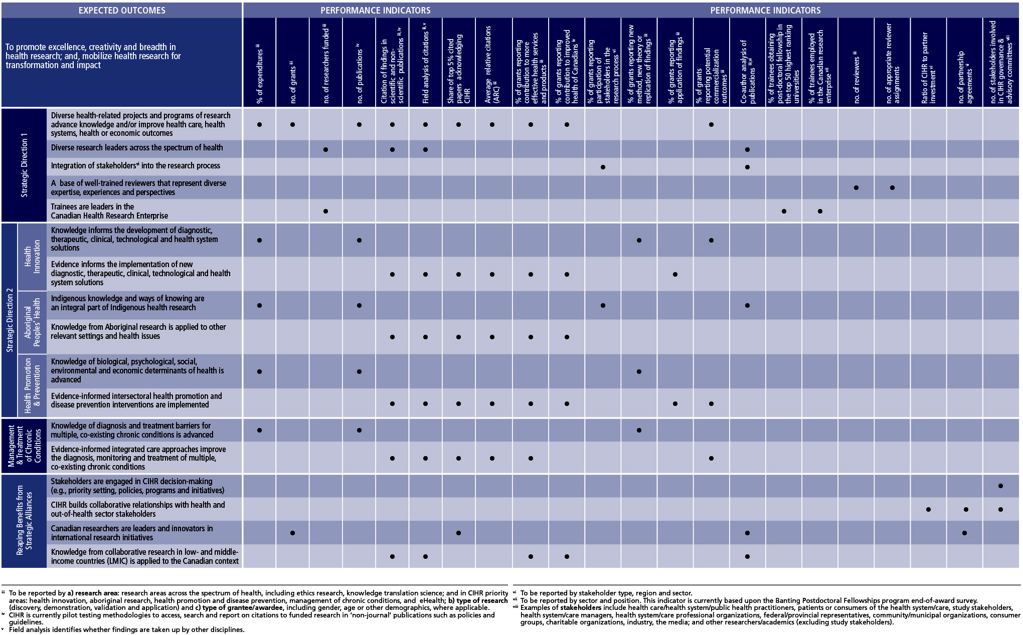 Health Research Roadmap II: Capturing Innovation to Produce Better Health and Health Care for Canadians – Table 1