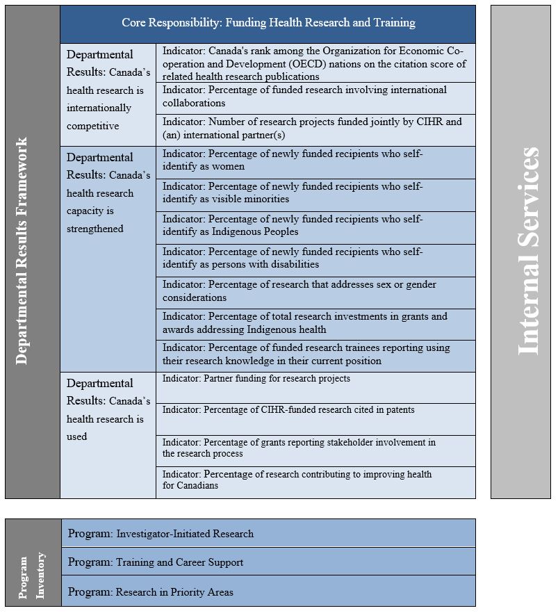 Supporting information on planned expenditures, human resources, and results related to the Canadian Institutes of Health Research's program inventory is available on GC InfoBase.