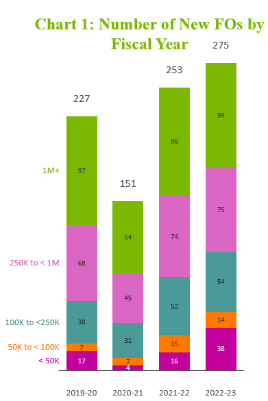 1. An increasing volume of new FOs with a low-monetary value; and,