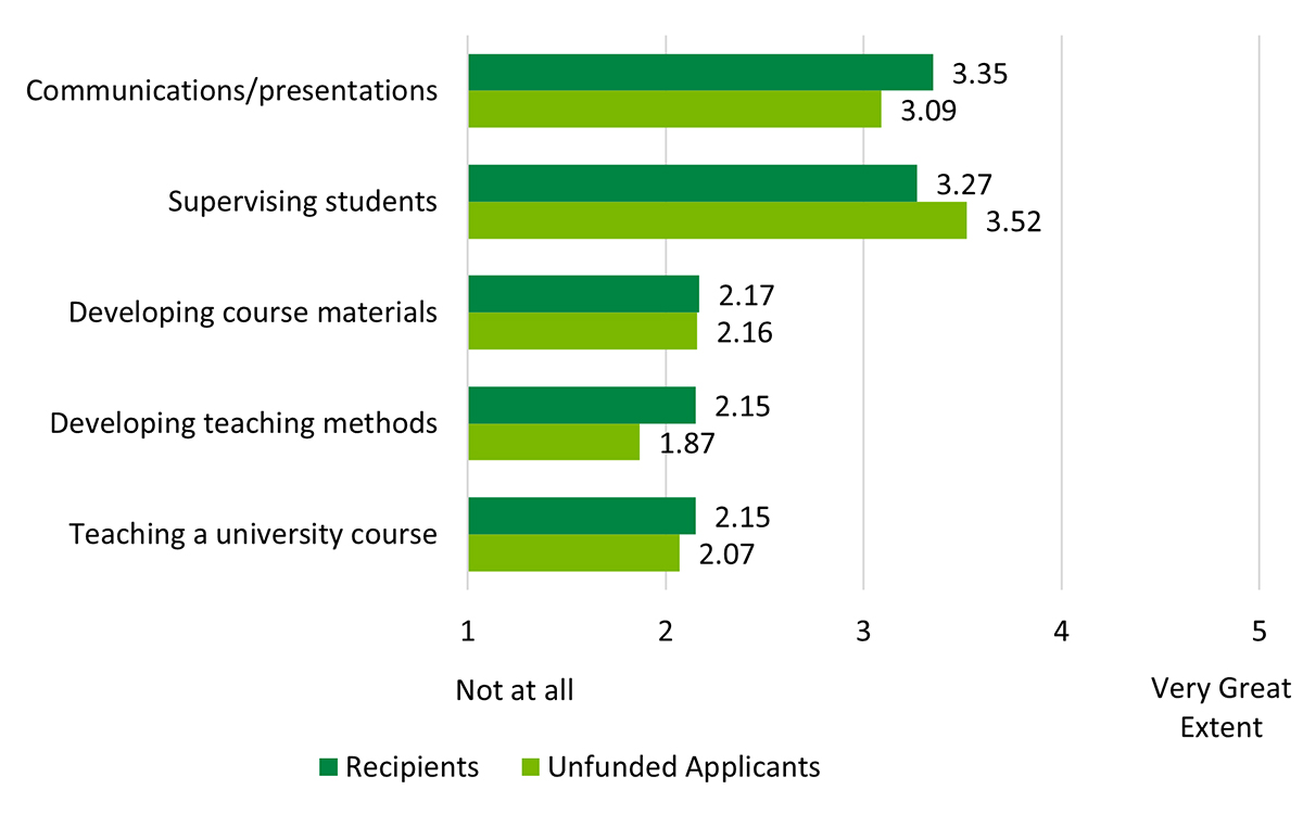 - Figure 4: Extent of improvement in teaching leadership activities for Banting PDF recipients (during the Banting PDF) and unfunded applicants (during their fellowship)