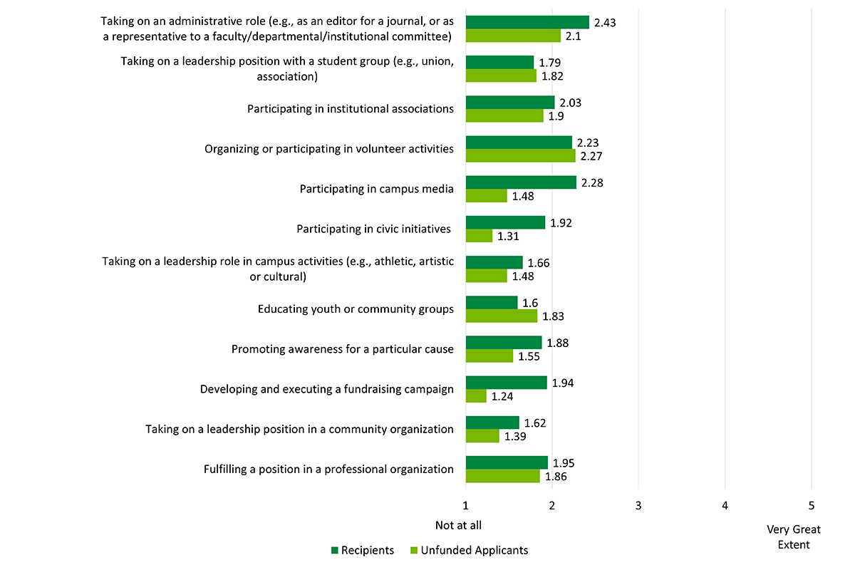 - Figure 5: Extent of improvement in service leadership activities for Banting PDF recipients (during the Banting PDF) and unfunded applicants (during their fellowship)