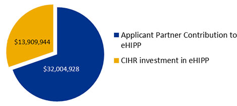 IHSPR has been very successful at leveraging partner contributions, at both a competition and applicant level, to funding opportunities funded from their own budget. This is due in part to the mandatory partnership requirements on many IHSPR-associated funding opportunities. The leverage ratio over IHSPR’s 16-year period is 0.28, which means for every $100 invested out of IHSPR’s budget there is $28 leverage from external partners. However, due to limitations on how CIHR tracks applicant partners, this only partially reveals IHSPR’s success. For example, in the eHealth Innovations Partnership Program (eHIPP) Operating Grant competition, applicants were required to secure partnership contributions as a prerequisite to apply. An examination of the applicant partnership data reveals that applicant partner contributions accounted for 70% of the investment in the eHIPP operating grant funding opportunity, whereas CIHR’s investment accounted for the remaining 30%, which translates to a leverage ratio of 2.3 for this particular funding opportunity. (See Appendix 3).