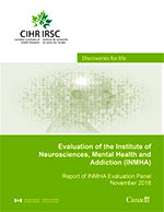 The Canadian Institutes of Health Research (CIHR) has conducted this evaluation of the Institute of Neuroscience, Mental Health and Addictions (INMHA) as part of the suite of rolling evaluations of all CIHR Institutes. The aims of the evaluation are to: