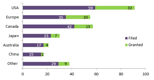 - patent applications filled (64%);