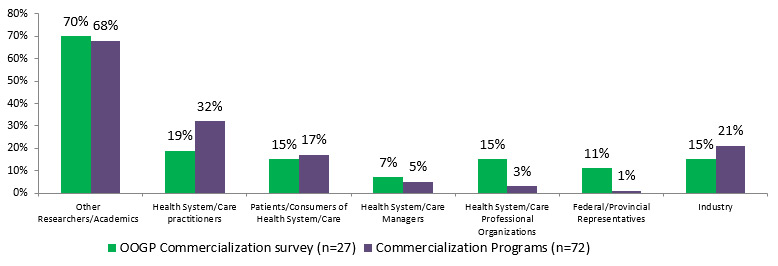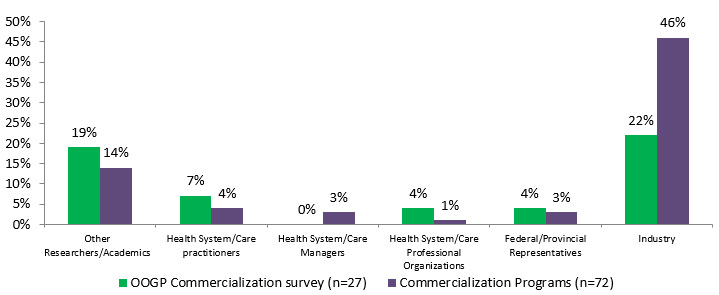 - CIHR commercialization programs involved industry and other relevant stakeholders to a higher degree during all the stages of their projects compared to OOGP funded researchers.