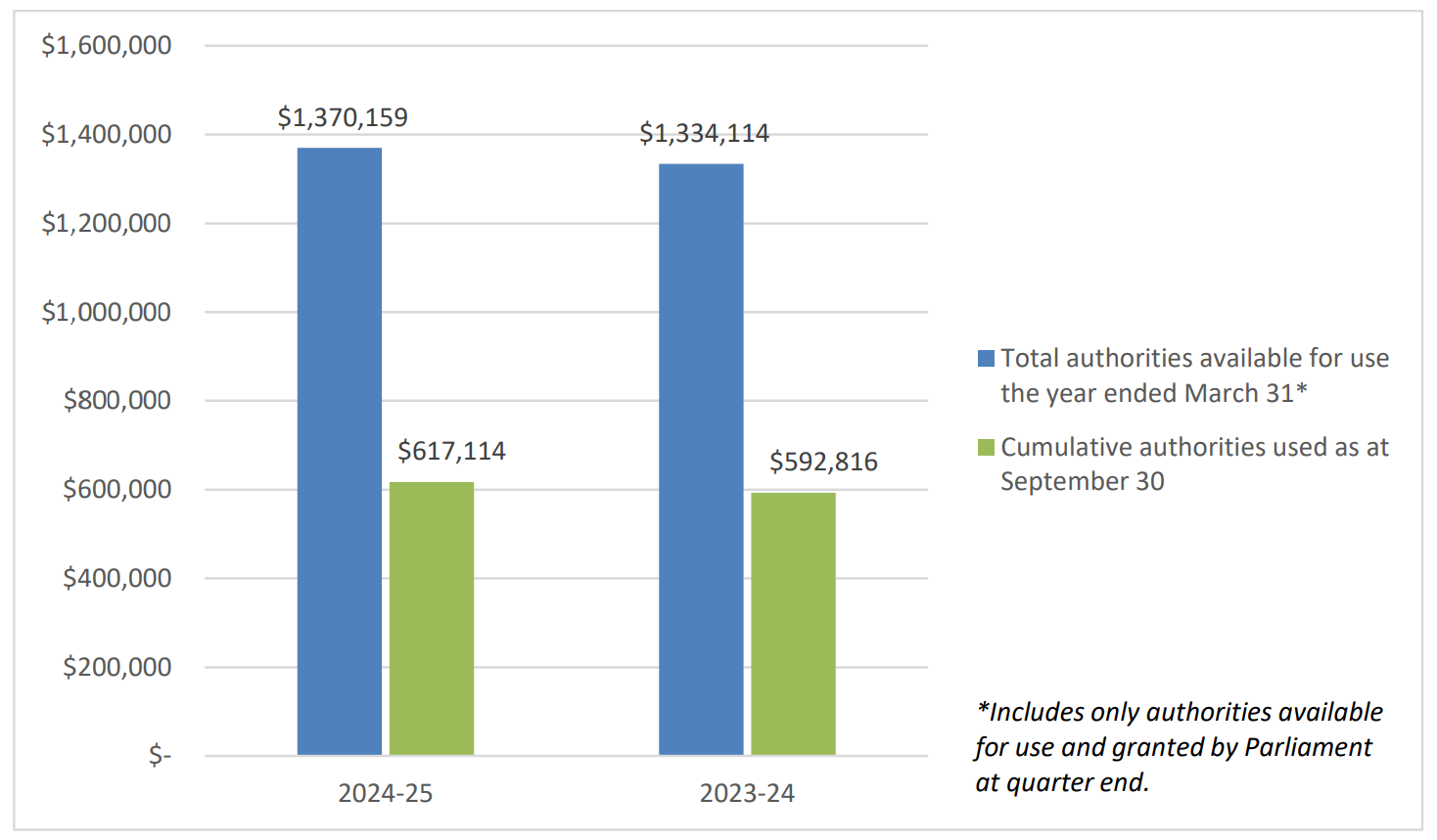 | Total authorities available for use the year ended March 31Footnote * | $1,370,159 | $1,334,114 |
